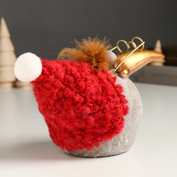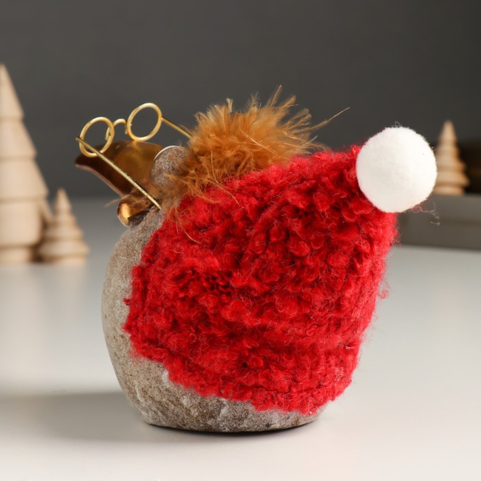 Сувенир полистоун "Ворона в очках и красном колпаке с бомбошкой" блёстки 16х11х15 см