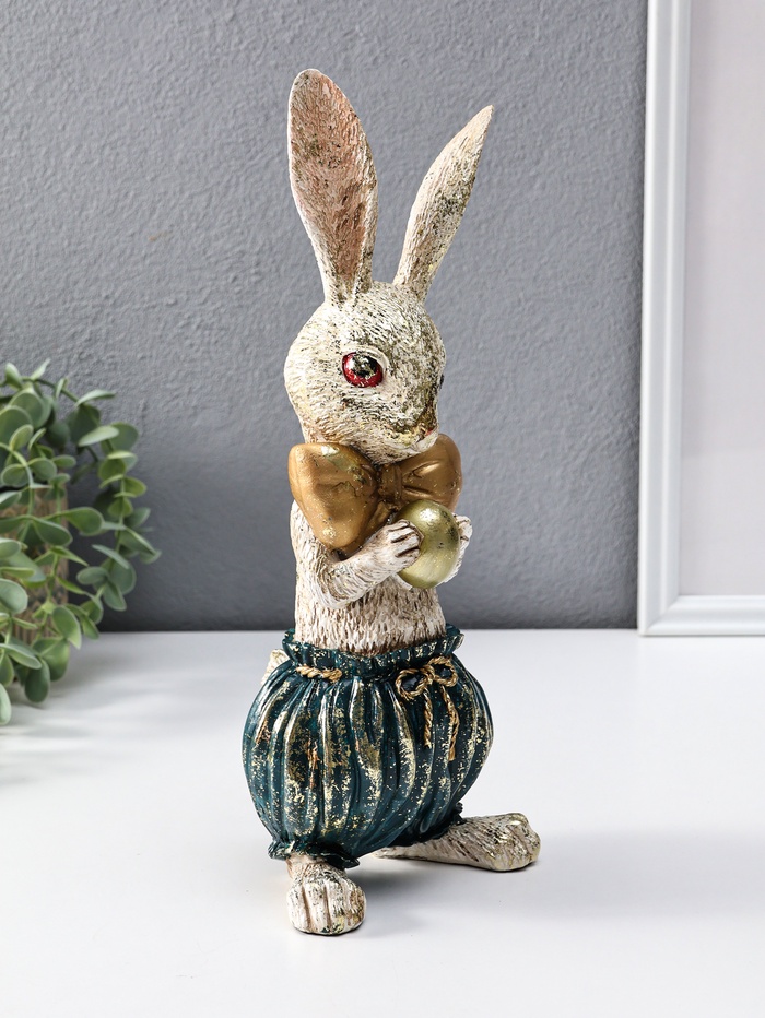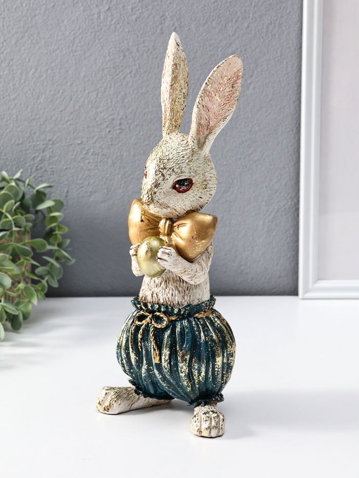 Фигура полистоун «Зайчик с золотым яичком», 12×9.5×30 см