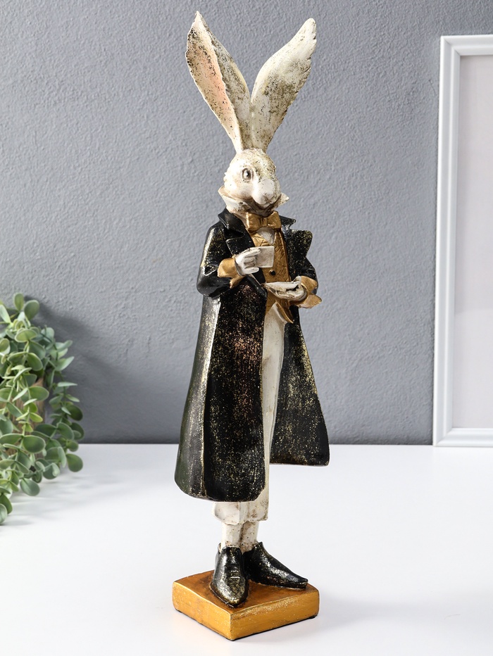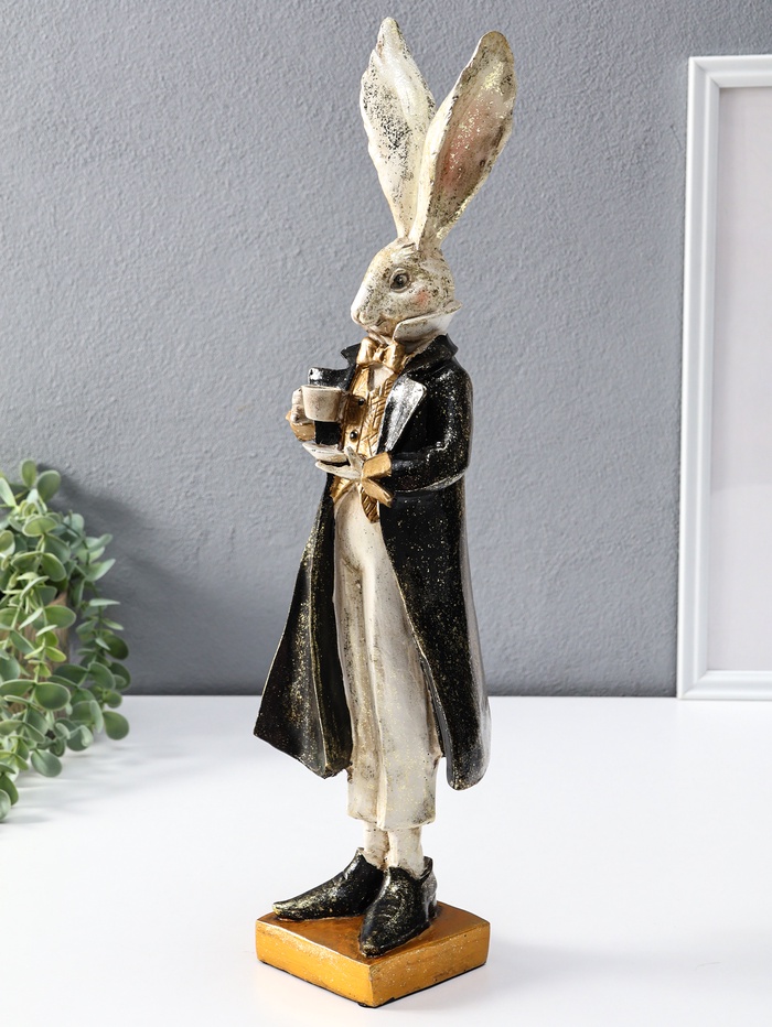 Фигура полистоун «Заяц с чашкой чая», 13.5×11×46.5 см