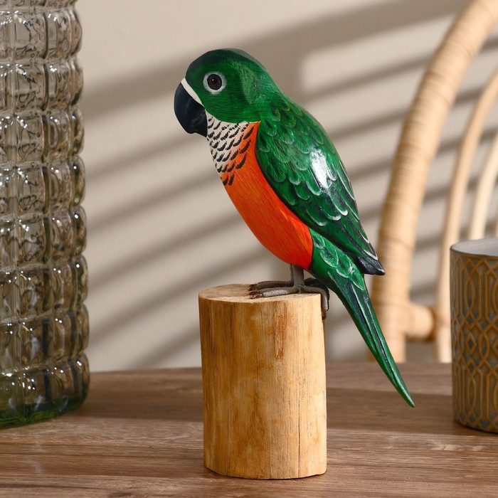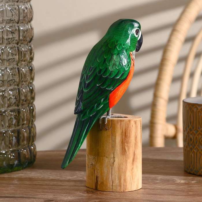 Сувенир «Попугай», 20 см, дерево, зелёный