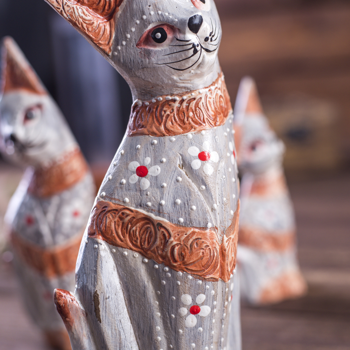 Технические характеристики Сувенирный набор «Кошечки с полосками», h=20 см, h=17 см, h=15 см, дерево