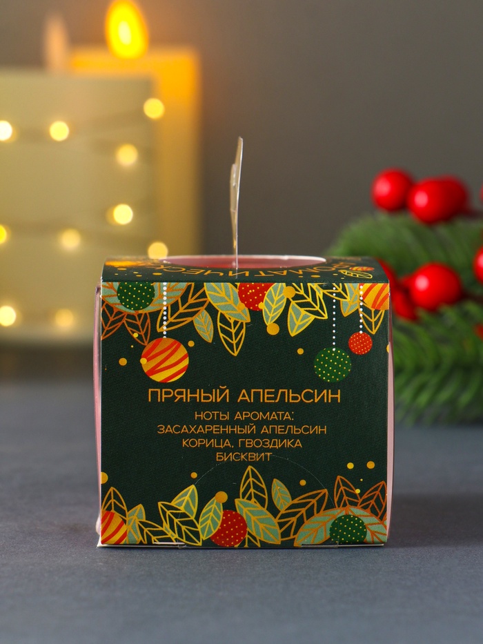 Технические характеристики Свеча ароматическая новогодняя "Пряный апельсин" в стакане, 60 гр,