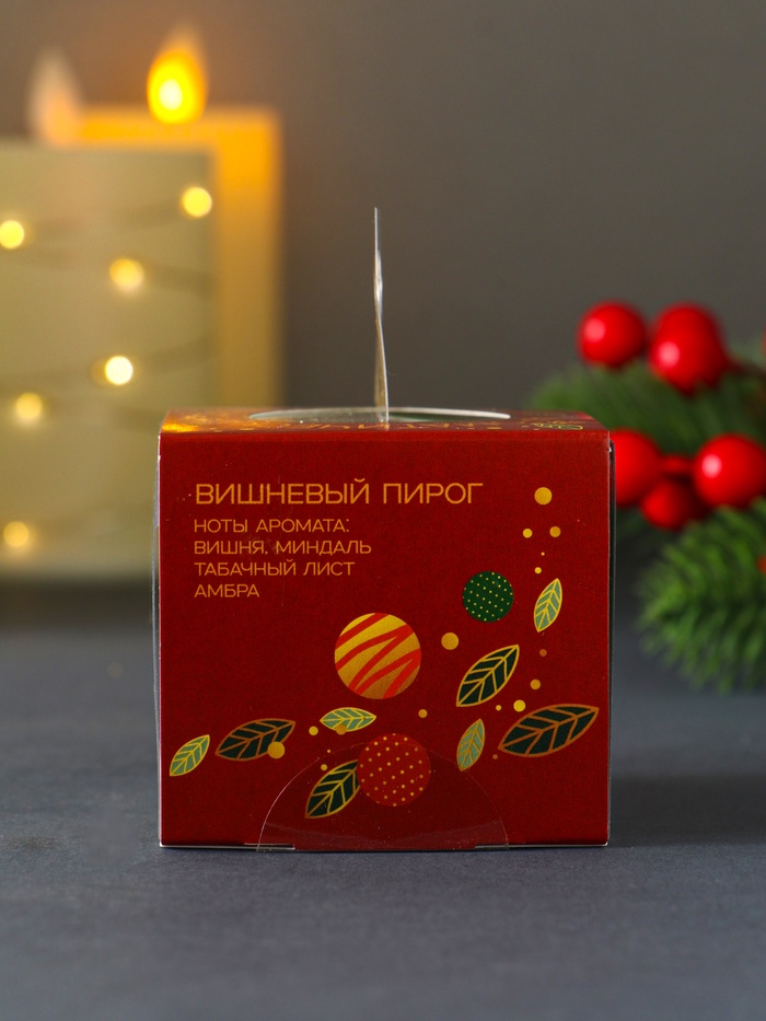 Свеча ароматическая новогодняя "Вишнёвый пирог" в стакане, 60 гр,