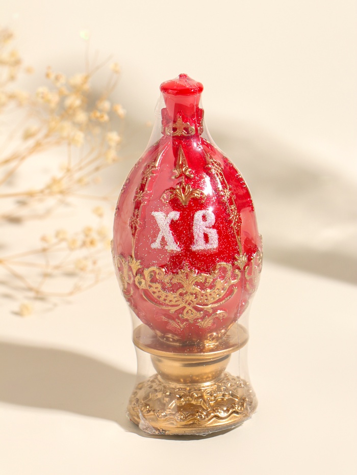 Это пасхальное яйцо-свеча создаёт тёплый, живой свет, наполняя дом атмосферой праздника. Его изящный орнамент и благородное сочетание золота и красного превращают простой ритуал зажигания свечи в красивую традицию. Идеальная деталь для пасхального декора стола или уютного интерьера.