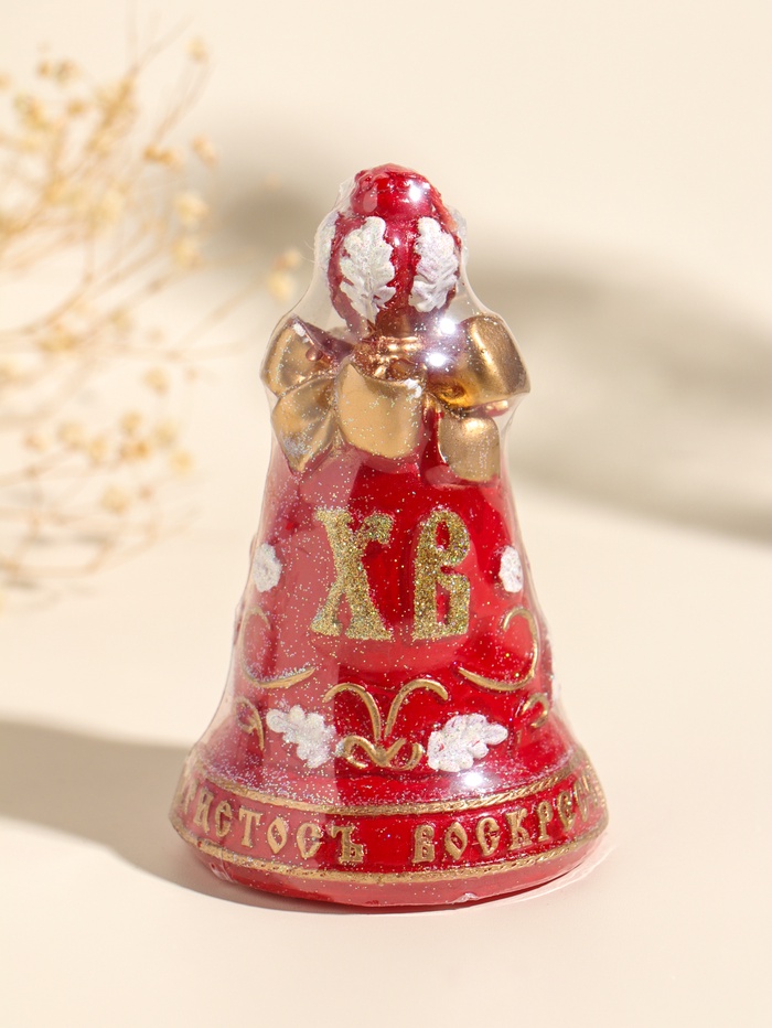 Эта пасхальная свеча в форме колокольчика наполнит ваш дом духом праздника. Её тёплое золотое сияние и яркие красные акценты создают настроение светлого торжества, а классическая форма станет центром праздничной композиции. Изготовленная из чистого парафина, свеча горит ровно и долго, становясь символом весеннего обновления и семейного уюта.