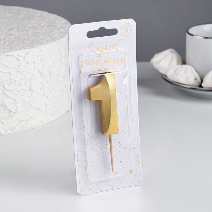 Свеча для торта на шпажке «Грань», 5.5 см, цифра 1, золотая
