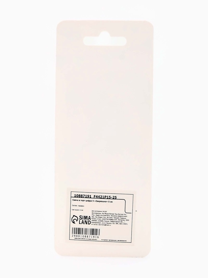 Свеча для торта цифра 5 «Зверюшка», 5 см