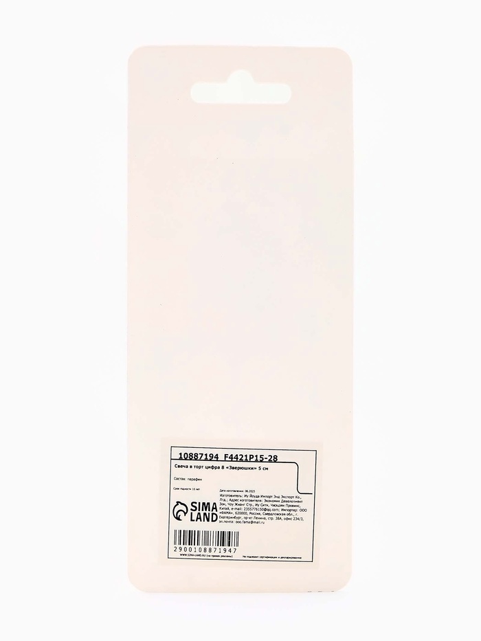 Свеча для торта цифра 8 «Зверюшки», 5 см