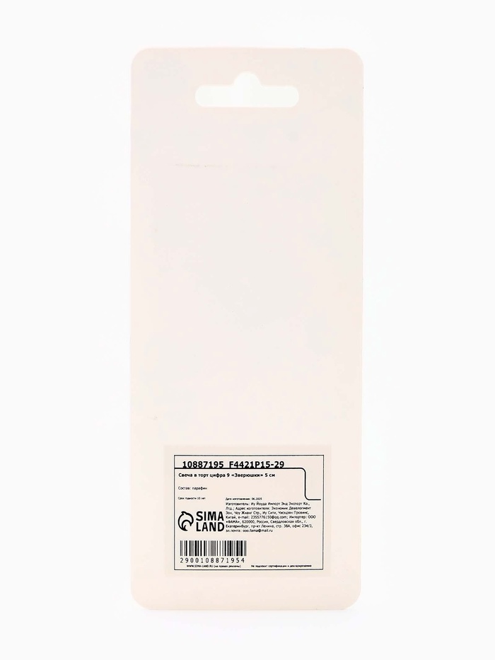 Свеча для торта цифра 9 «Зверюшки», 5 см