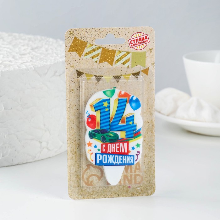 Свеча для торта цифра «С Днём Рождения» 14 голубая, 6.5 см