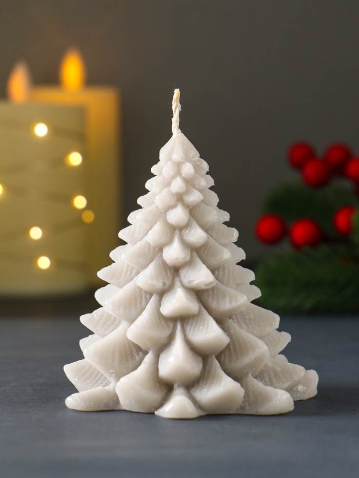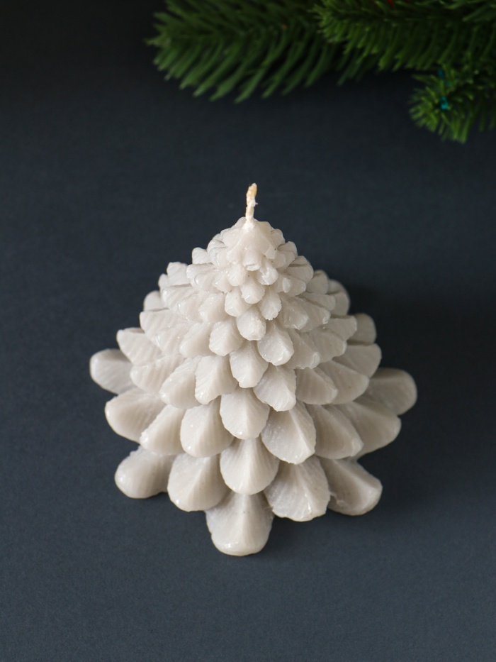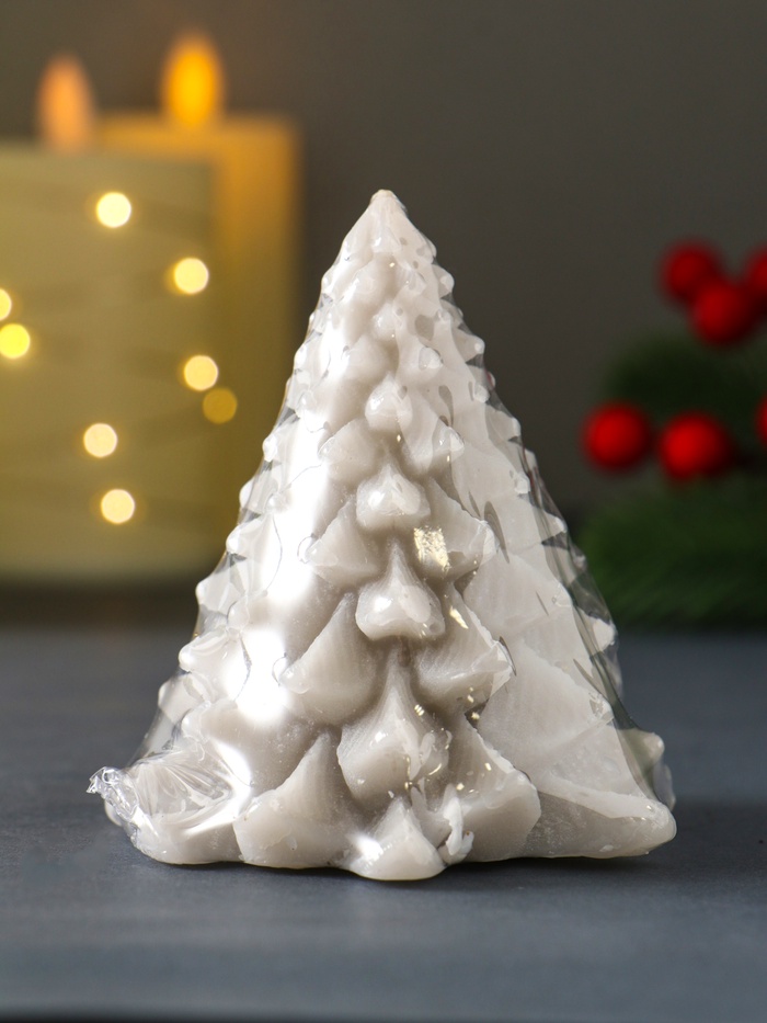 Эта серебристая свеча в виде ели создаёт в доме атмосферу зимнего праздника. Её классическая форма и благородный металлический оттенок делают декор стильным и самодостаточным.