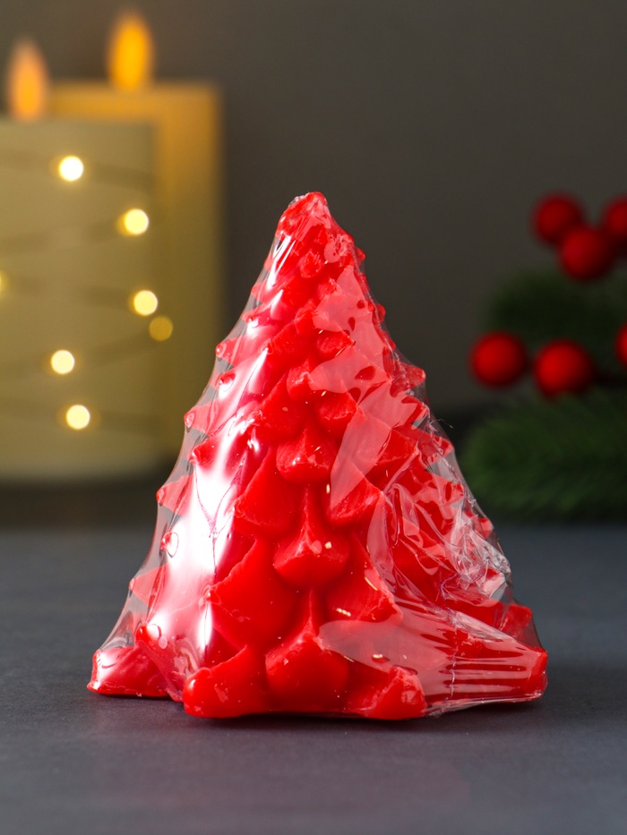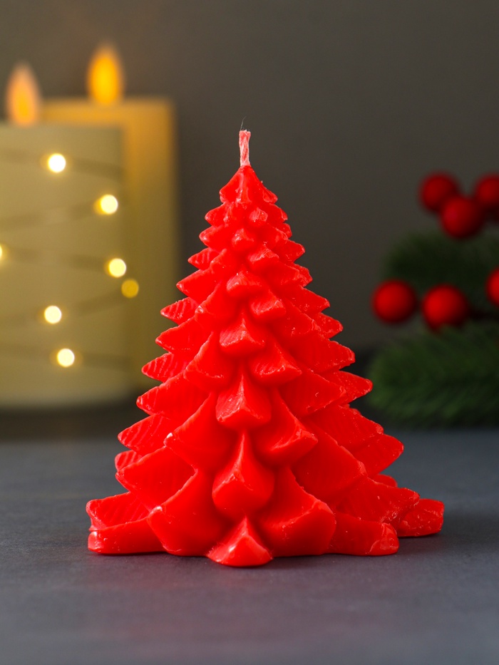 Эта красная парафиновая свеча в виде ели станет центральным элементом новогоднего декора. Её классическая форма и насыщенный красный цвет создают в доме атмосферу уюта и праздничного волшебства.