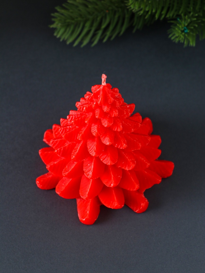 Свеча новогодняя «Ель пушистая», 80×80×90 мм, красная