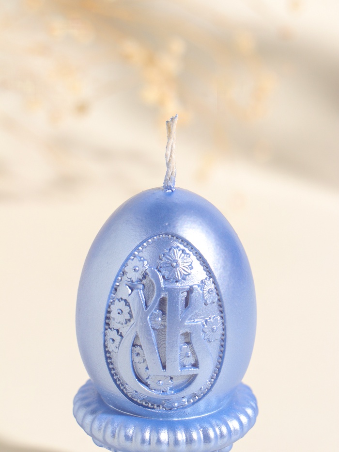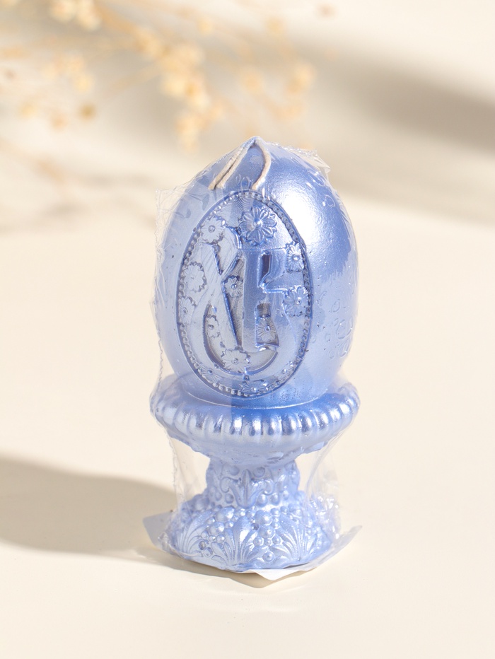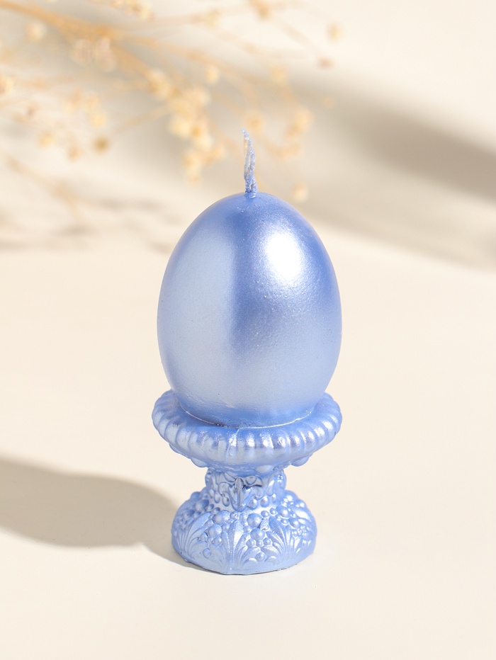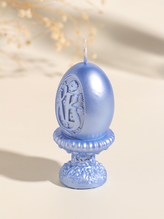 Этот пасхальный подсвечник создаёт особое, тёплое настроение праздника. Фигурная свеча в виде яйца на декоративной подставке станет центральным элементом пасхального декора. Её небесно-голубой цвет напоминает о весеннем небе и символизирует светлую радость Воскресения.