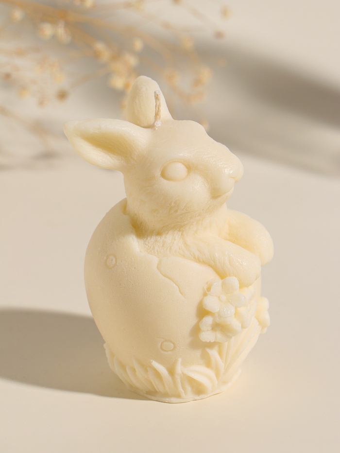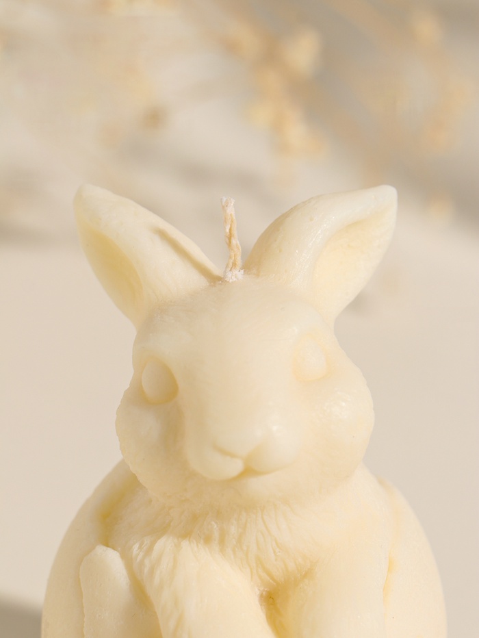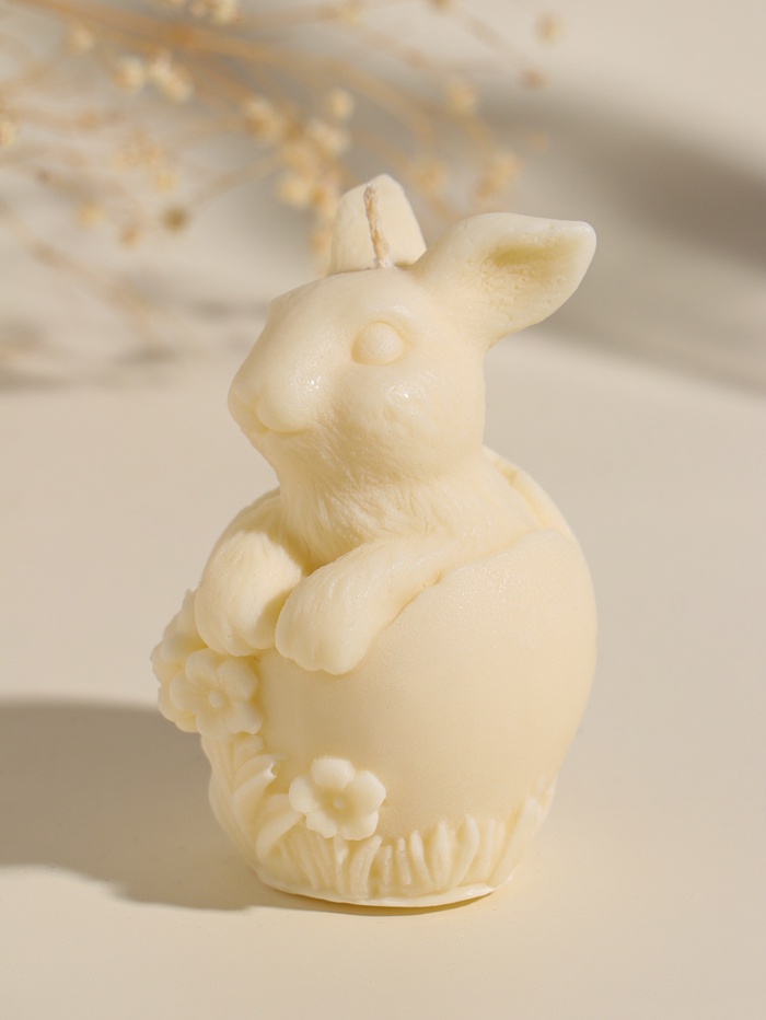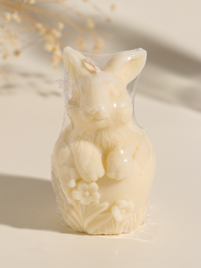 - Форма: уникальная фигурная свеча «Заяц с цветами».