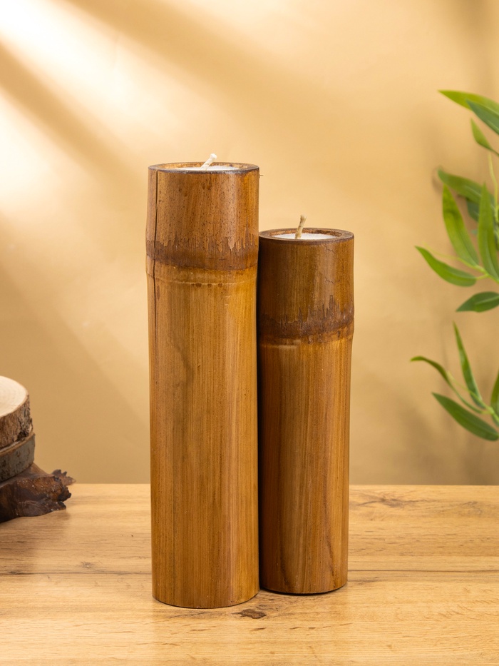 Технические характеристики Свеча в бамбуке тройная, 14×15×30 см, 100 мл, бежевая