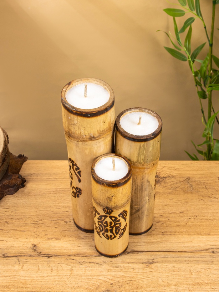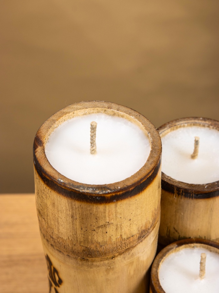 Технические характеристики Свеча в бамбуке тройная «Экзотика», 13×15×30 см, 100 мл, бежевая