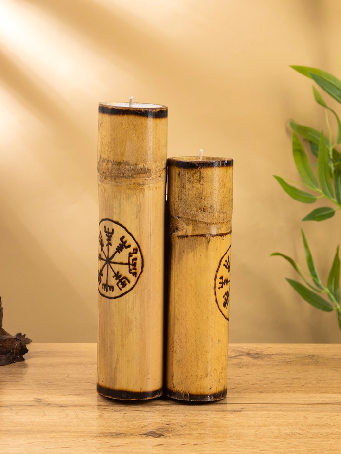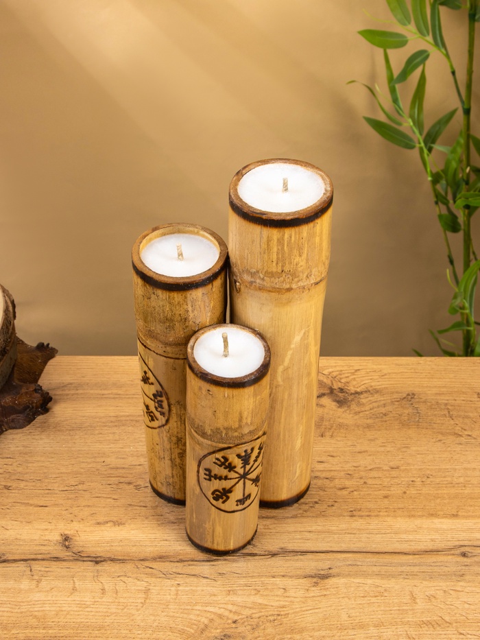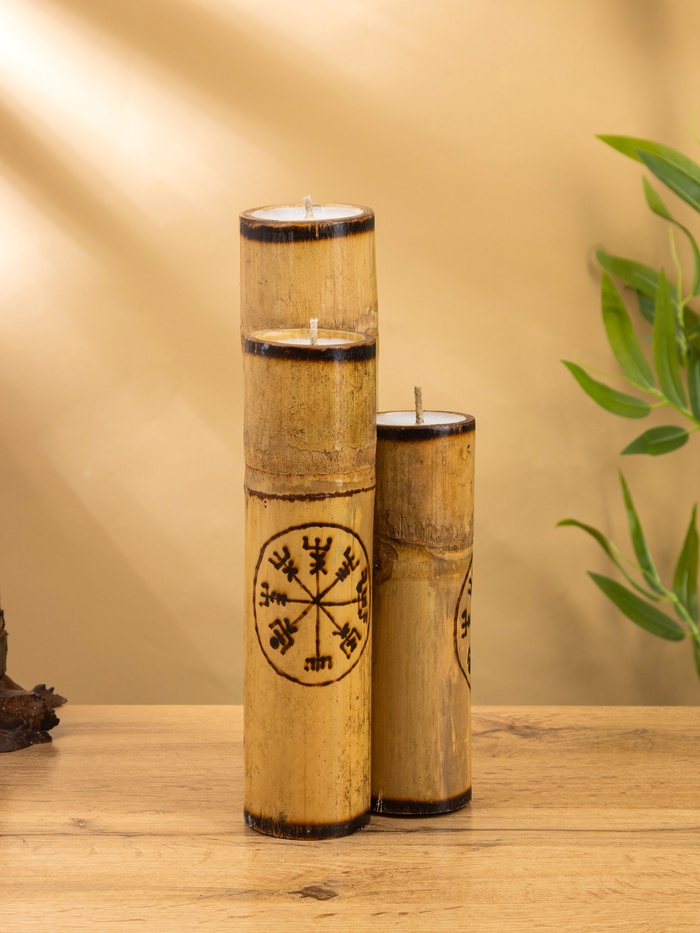 Технические характеристики Свеча в бамбуке тройная «Руны», 13×14×30 см, 100 мл, бежевая