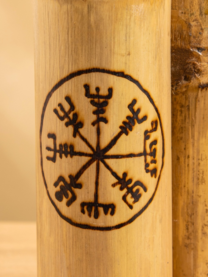 Свеча в бамбуке тройная «Руны», 13×14×30 см, 100 мл, бежевая