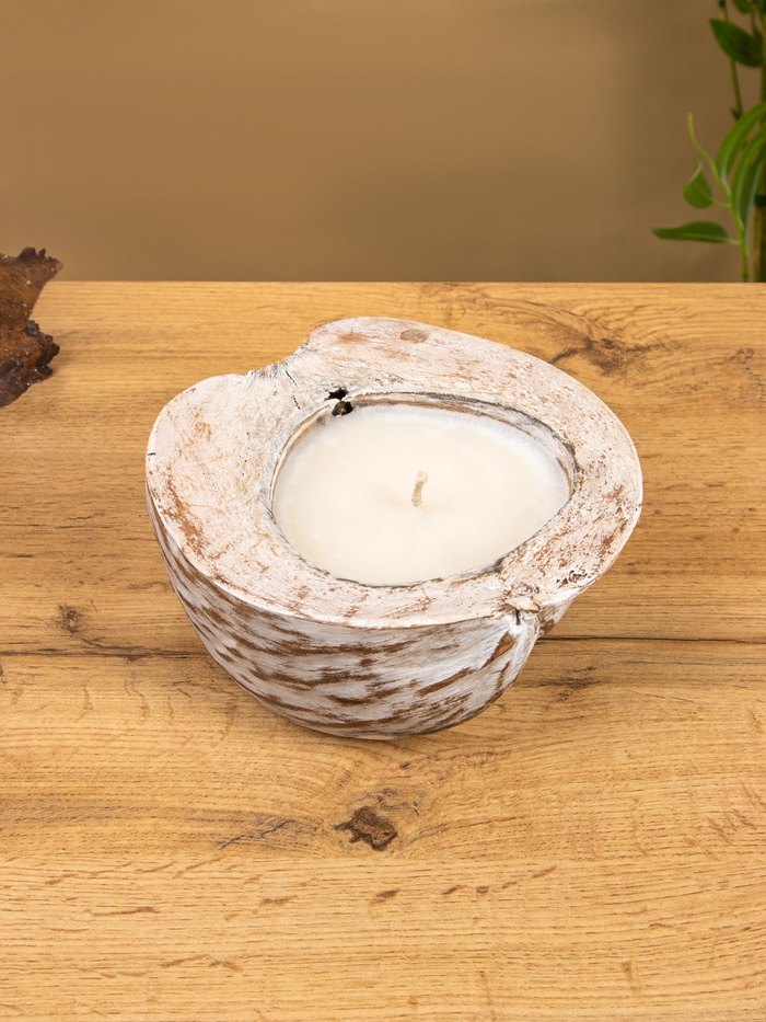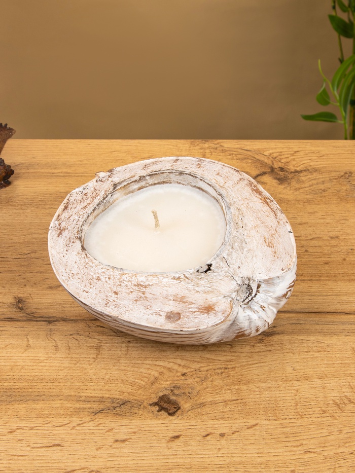 Свеча в кокосе, 20х20х7 см, цв. белый