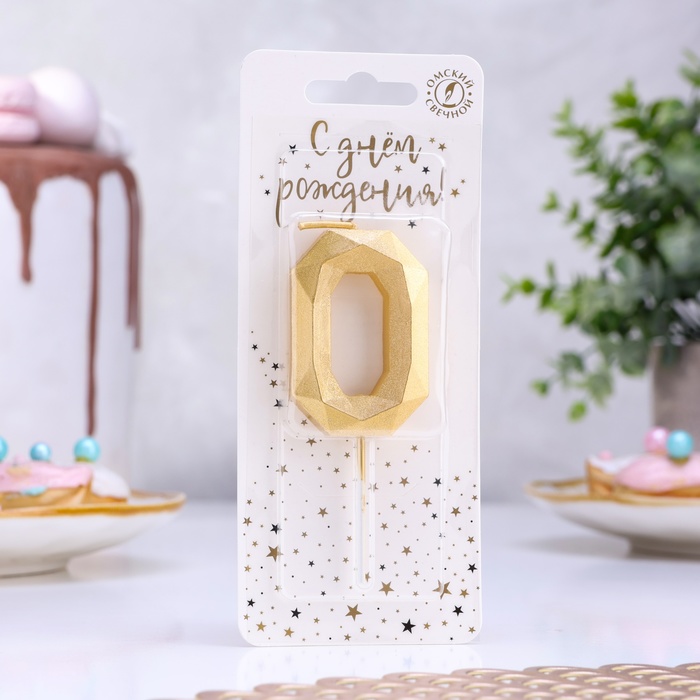 Свеча в торт на шпажке «Многогранник», цифра 0, 7 см, золото