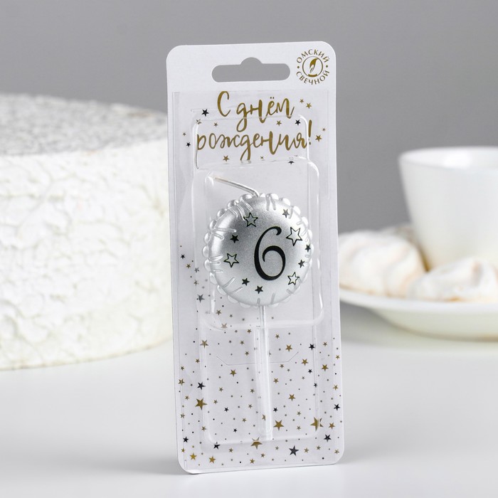 Свеча в торт на шпажке «Воздушный шарик», цифра 6, 3.5 см, серебро