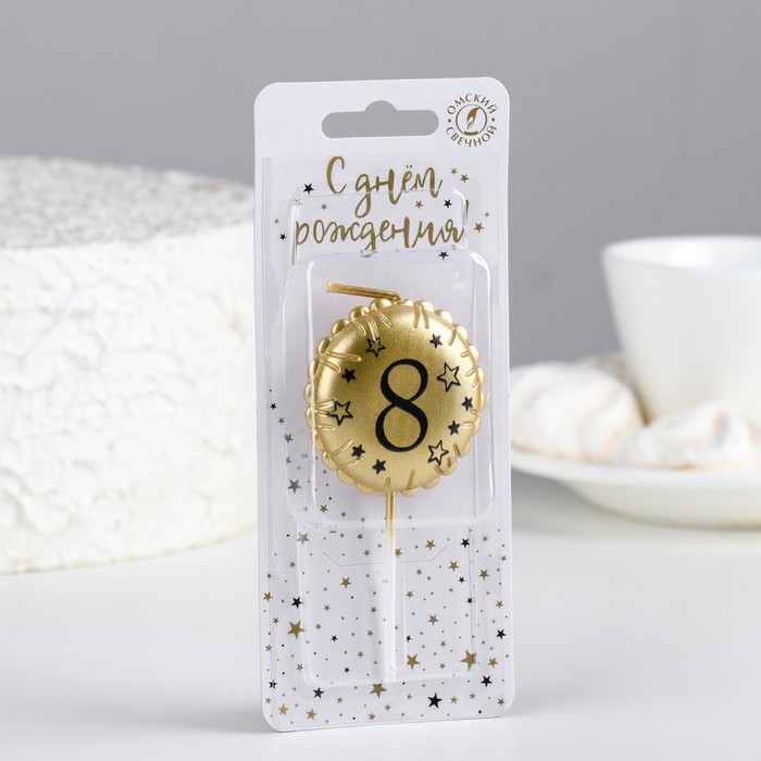 Технические характеристики Свеча в торт на шпажке «Воздушный шарик», цифра 8, 3.5 см, золото