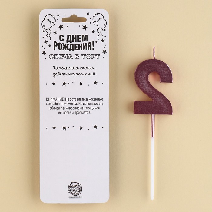 Технические характеристики Свеча в торт цифра «2», розовый перламутр
