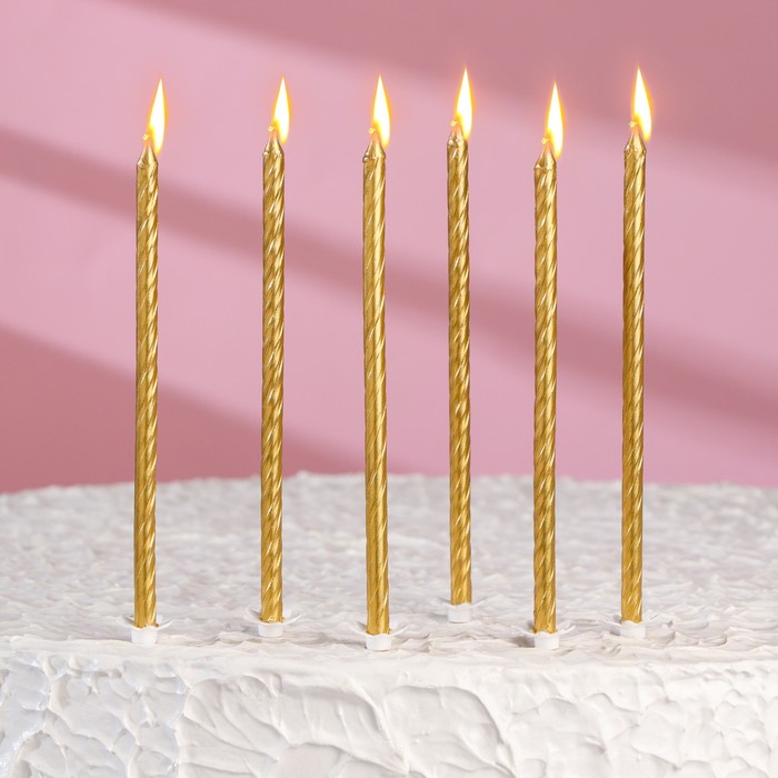 Свечи для торта «Классические» с подставкой, 13 см, 6 шт., золотые