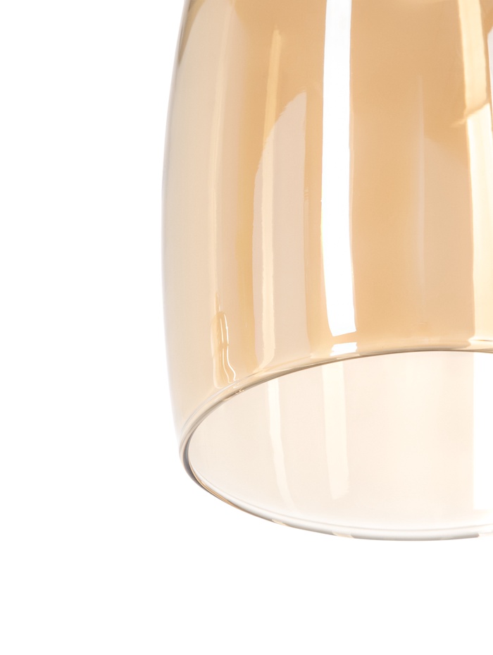 Подвесной светильник с одним источником света в золотистом исполнении привлекает внимание продуманным сочетанием металла и стекла. Лаконичная форма бокала янтарного плафона мягко рассеивает свет, создавая уютную и комфортную атмосферу в помещении.