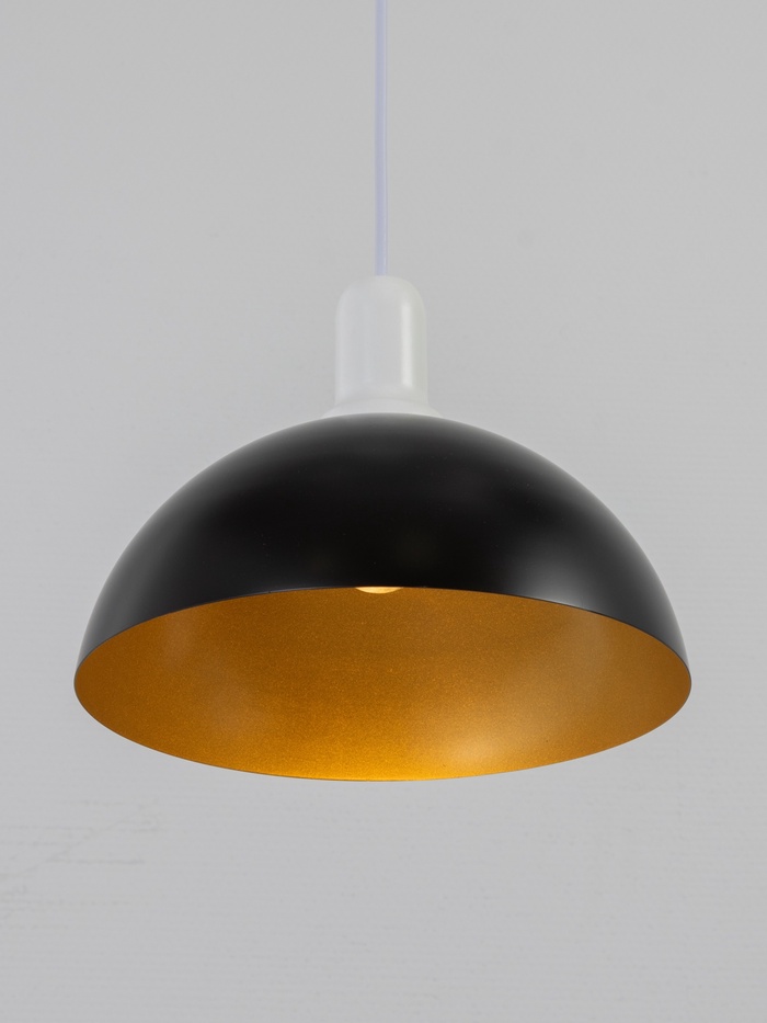Контрастный акцент для современного интерьера. Подвесной светильник с полусферой — это сочетание классической формы и выразительного двухцветного дизайна. Модель создает направленное освещение и служит стильным элементом декора.