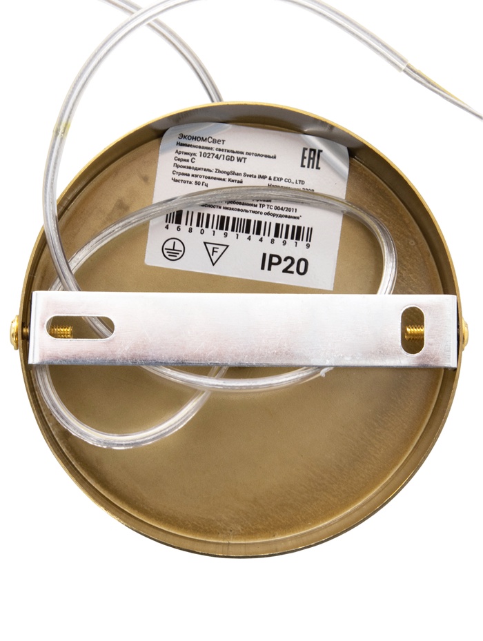 Светильник подвесной ЭкономСвет 10274/1GD, 1×40 Вт, E27, 13.5×13.5×13-75 см, золотой, белый