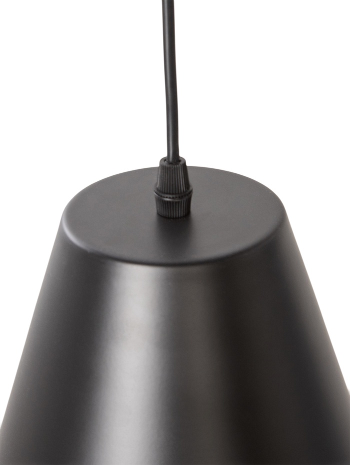 Подвесной светильник с конусным плафоном формирует направленный световой поток, идеально подходящий для акцентного и функционального освещения. Чёрный рассеиватель создаёт выразительный контраст и помогает сконцентрировать свет в нужной зоне, добавляя интерьеру глубину и графичность. Металлическое основание в чёрном цвете подчёркивает индустриальный характер модели и гармонично вписывается в интерьеры в стиле лофт. Лаконичная форма делает светильник универсальным — он легко комбинируется с разными материалами и фактурами. Цоколь E27 даёт свободу выбора лампы, позволяя адаптировать яркость и температуру света под конкретные задачи.
