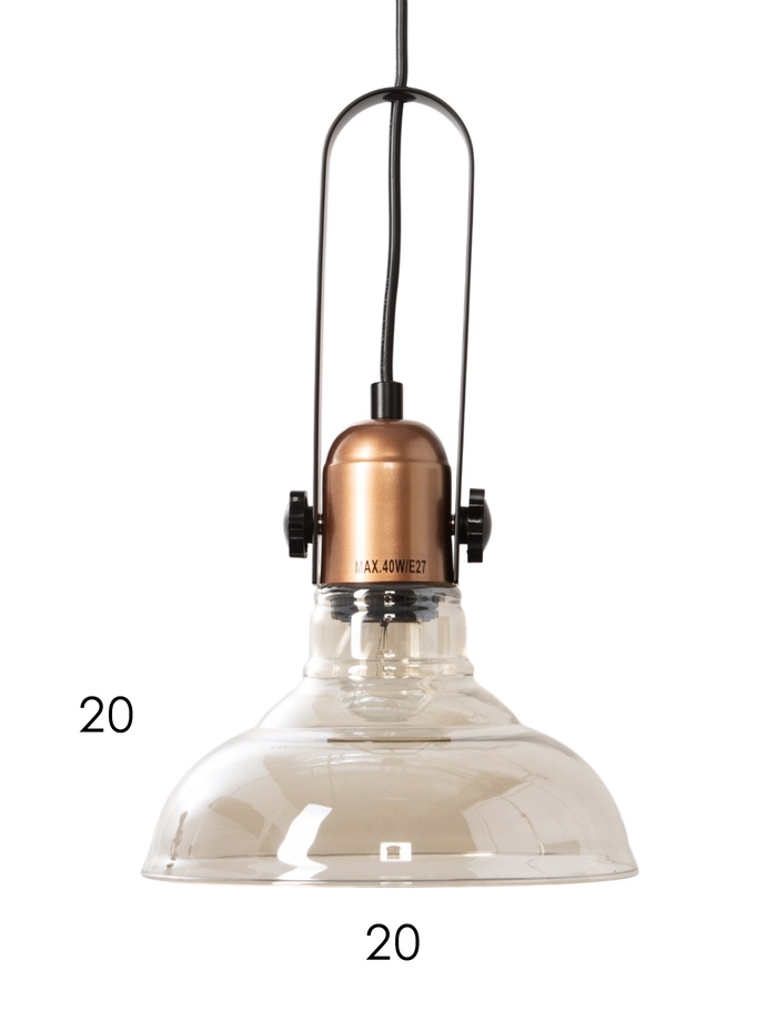 Подвесной светильник с янтарным стеклянным плафоном создаёт мягкое, тёплое освещение с характерной атмосферой уюта. Тонированное стекло слегка приглушает световой поток, придавая ему глубину и комфортную для глаз насыщенность.