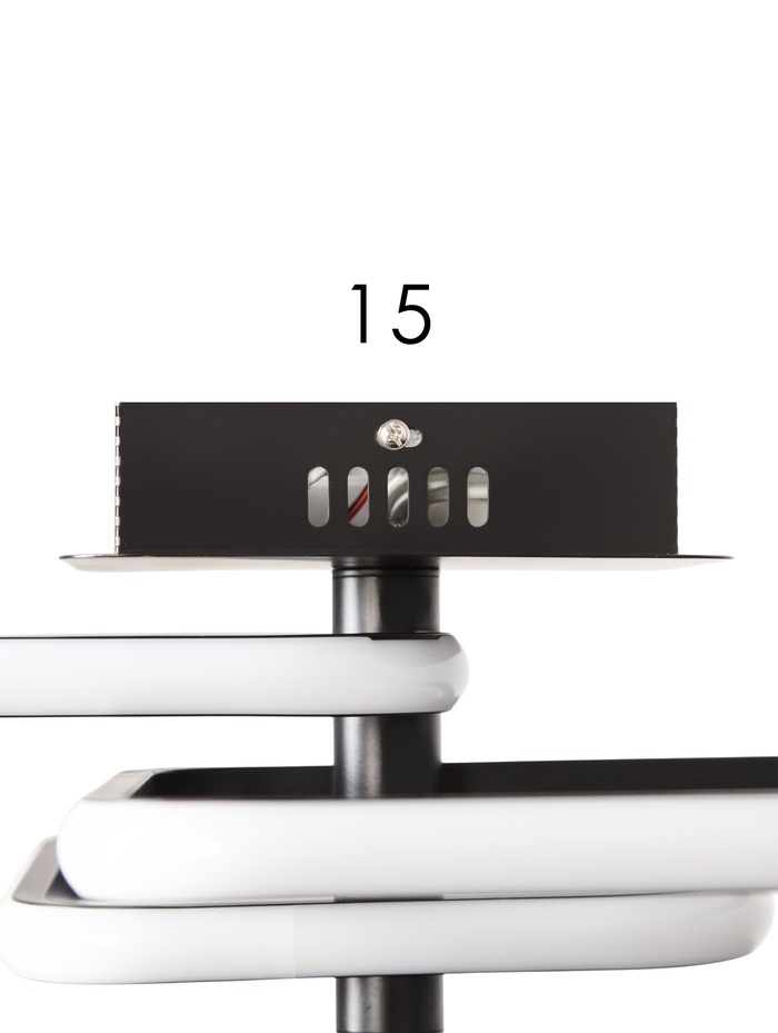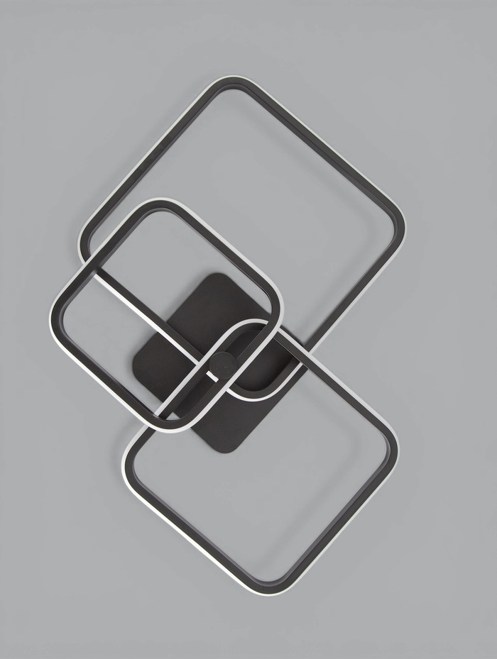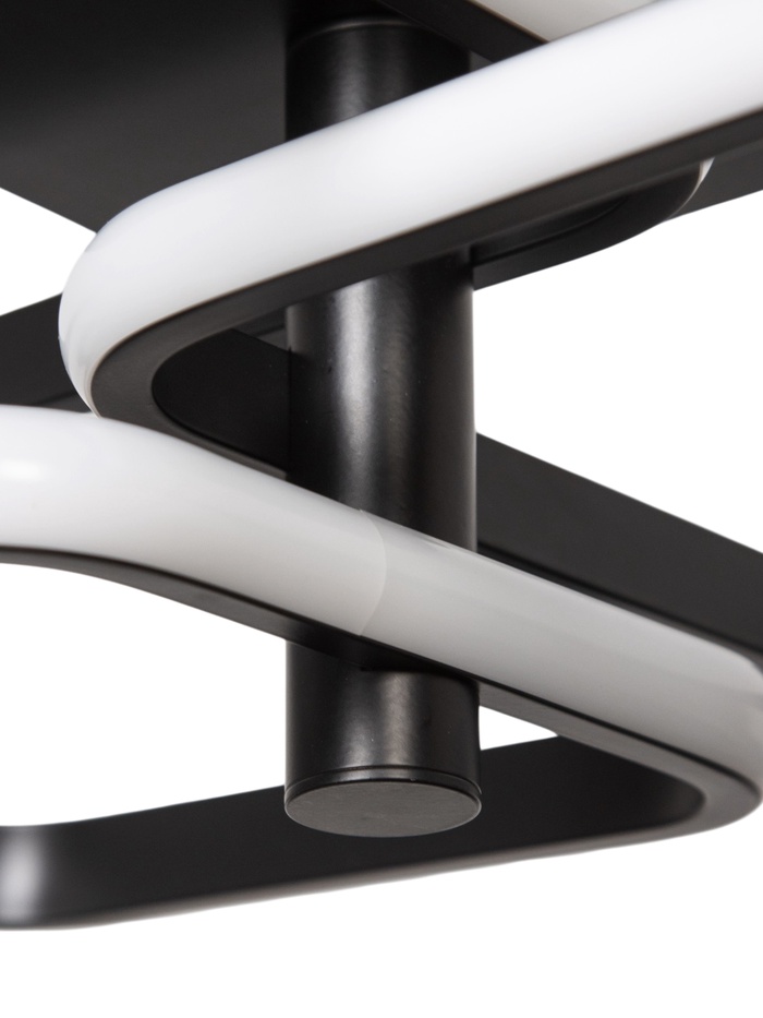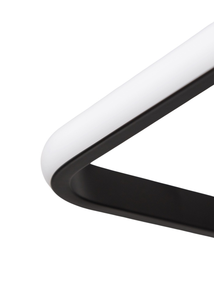 Геометричная композиция и чёрное основание формируют выразительный современный образ, который подчёркивает стиль интерьера. Силиконовый рассеиватель создаёт мягкое и равномерное свечение, визуально «смягчая» форму и делая свет более комфортным.