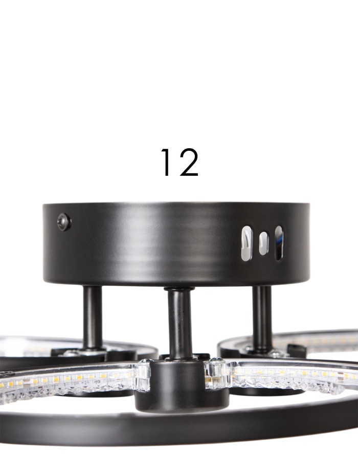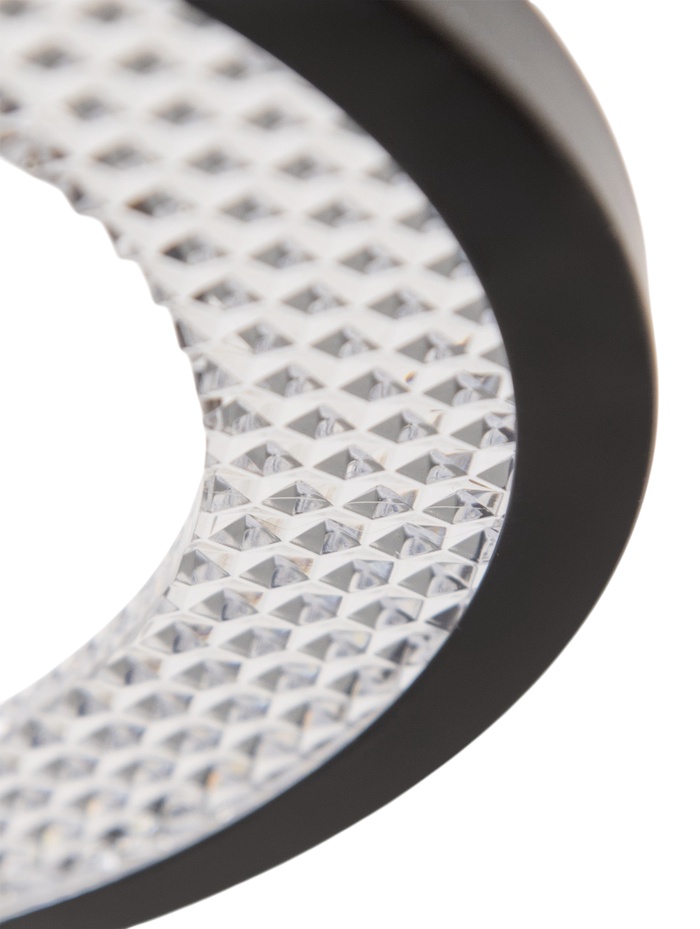 Композиция из нескольких световых элементов формирует выразительный дизайн с объёмным световым эффектом. Чёрный корпус подчёркивает геометрию формы и добавляет интерьеру графичности, а матовый рассеиватель обеспечивает мягкое и равномерное распределение света без бликов.