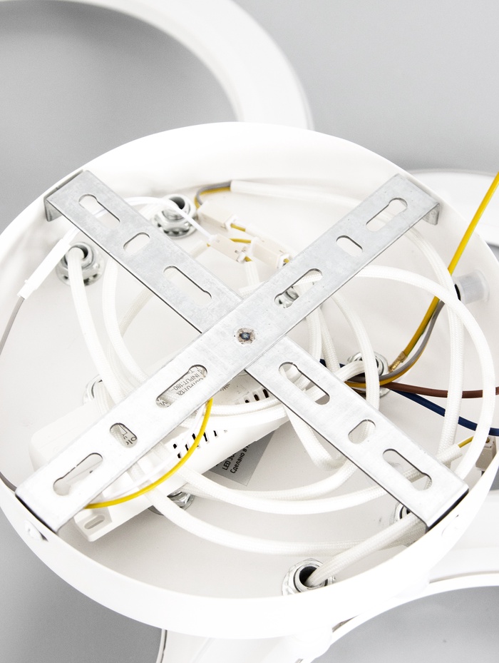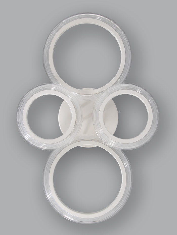 Светильник с выразительной кольцевой композицией формирует современный световой акцент и одновременно обеспечивает полноценное освещение помещения. Конструкция из нескольких световых элементов создаёт объёмный эффект и равномерное распределение света без резких перепадов яркости.