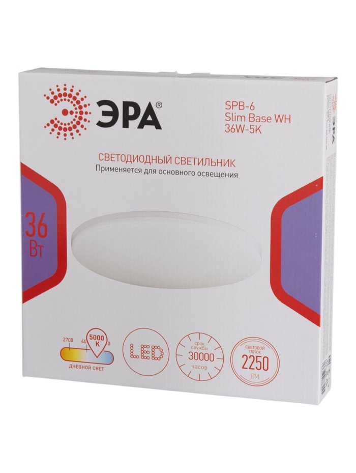 Технические характеристики Светильник потолочный LED SPB-6 Slim Base, 36Вт, 5000К, d300 h58, без ПДУ, белый