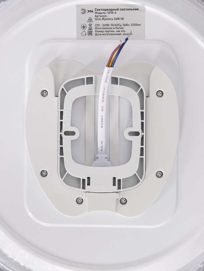 Технические характеристики Светильник потолочный LED SPB-6 Slim Mystery, 36Вт, 5000К, d300 h58, без ПДУ