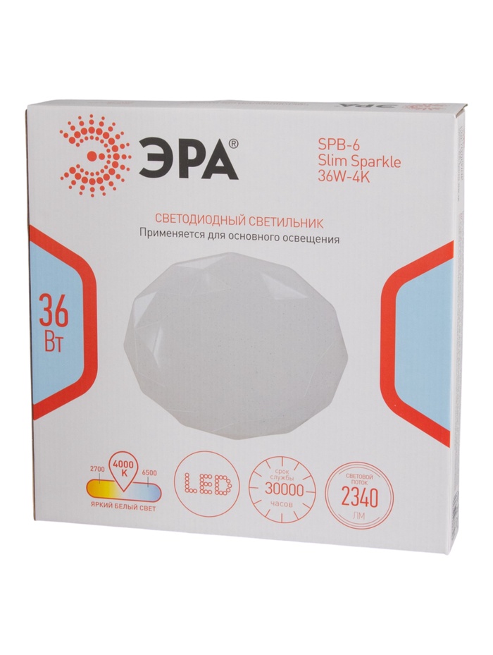 Технические характеристики Светильник потолочный LED SPB-6 Slim Sparkle, 36Вт, 4000К, d300 h55, без ПДУ