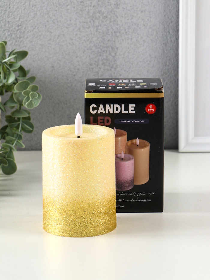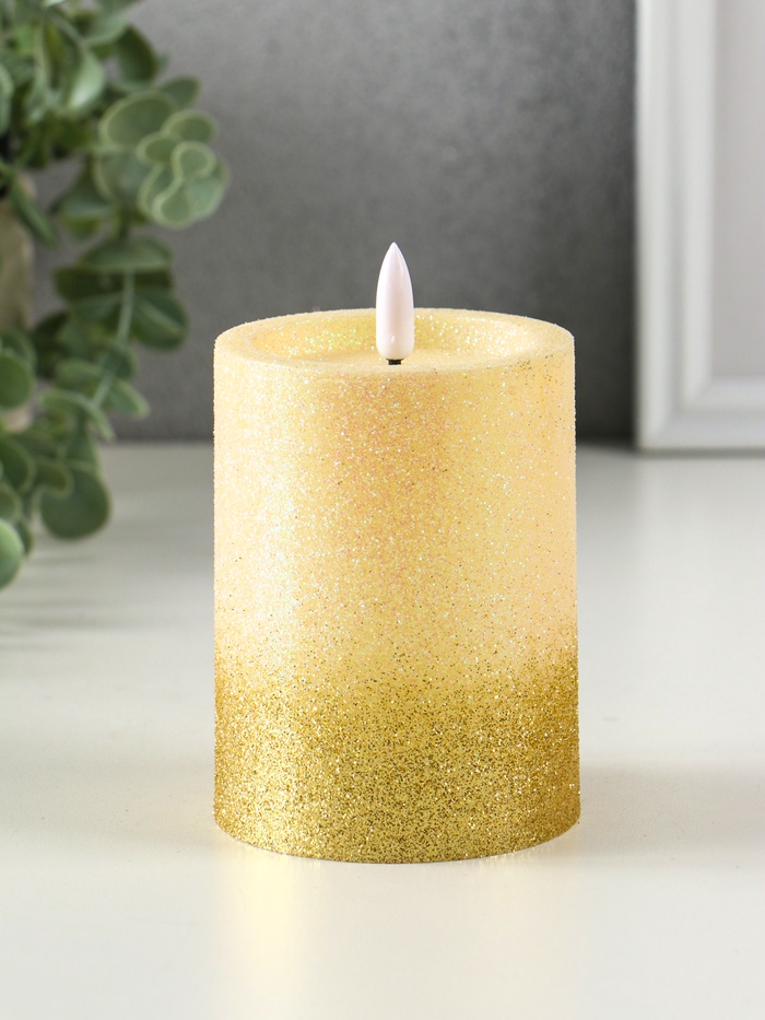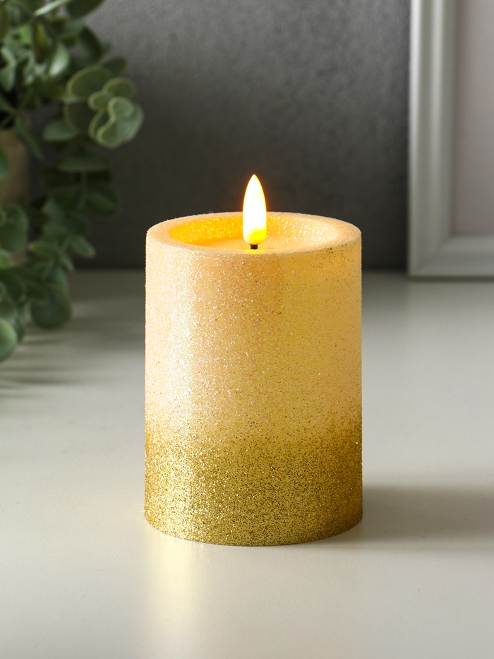 Светодиодная свеча LED RISALUX «Блёстки» 3хAAA золото 7,5х7,5х10 см