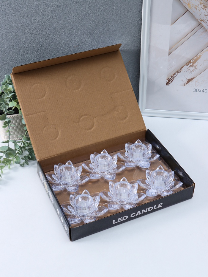 Светодиодная свеча LED "Свеча в лотосе" 3хLR1130, прозрачный 10,5х10,5х4,5 см