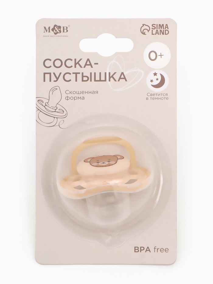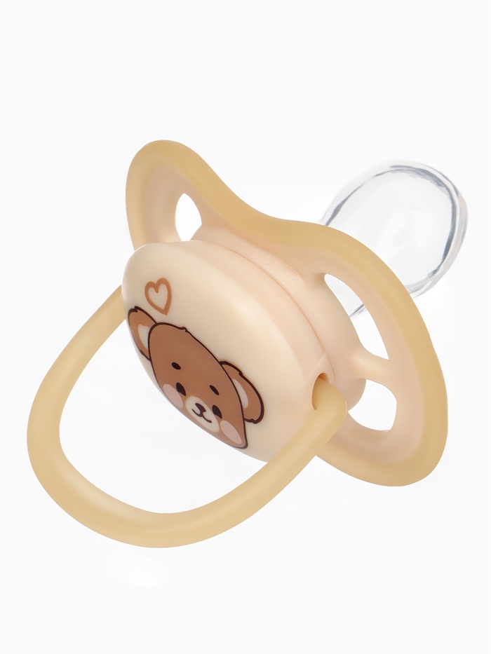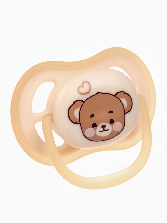 Светящаяся соска-пустышка анатомическая, силикон, от 0 мес., «Мишка», бежевая