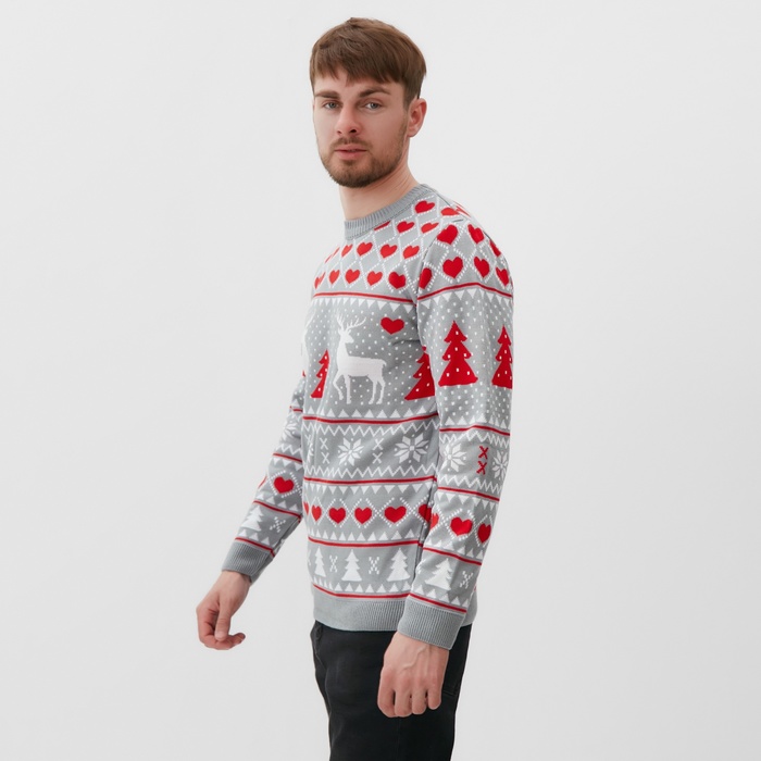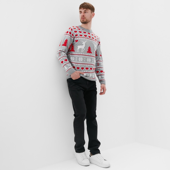 Свитер вязаный KAFTAN «Новогодний», размер 52, серый