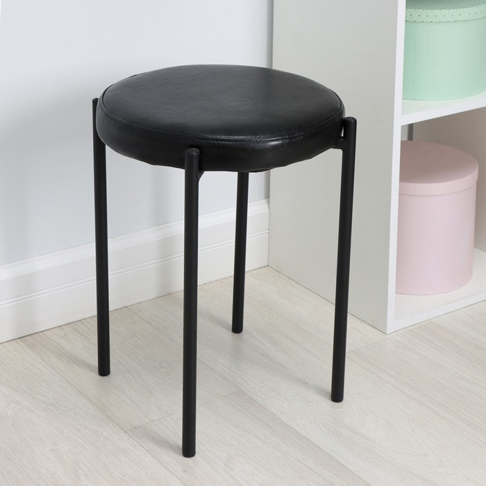 Табурет на четырёх опорах с мягким сиденьем. Размер изделия в разложенном виде - 38,5×45 см. Диаметр сиденья - 38,5 см.