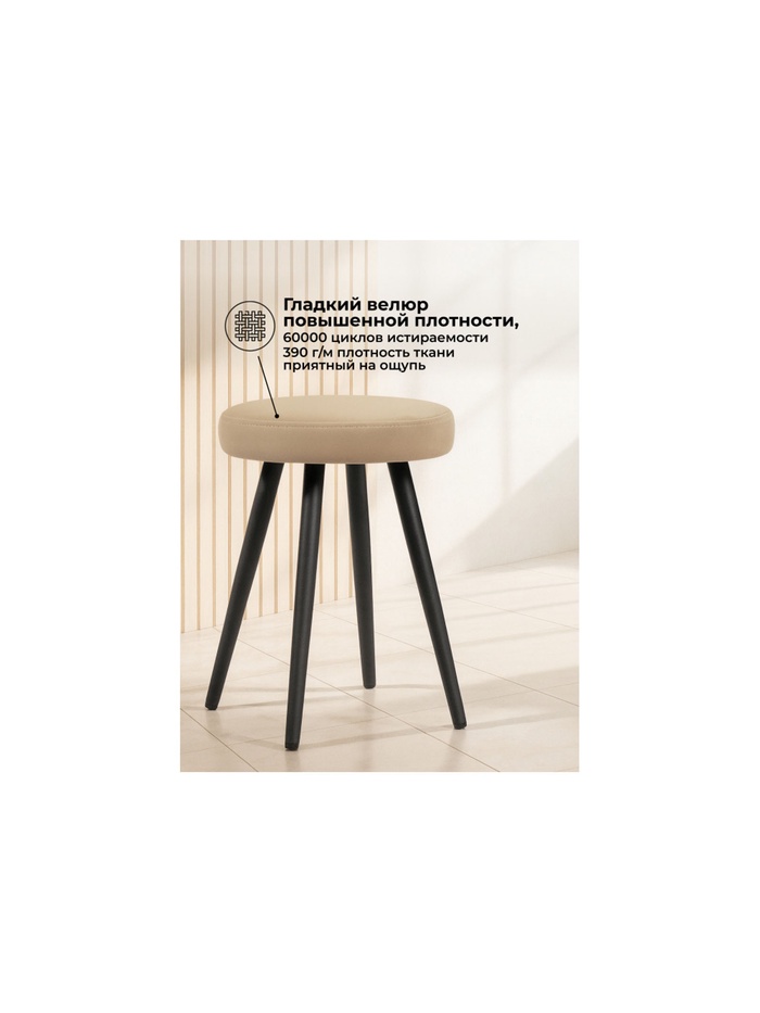 Технические характеристики Табурет мягкий «Сино», обивка velutto 05, цвет бежевый/чёрный