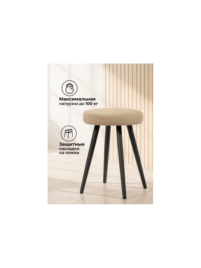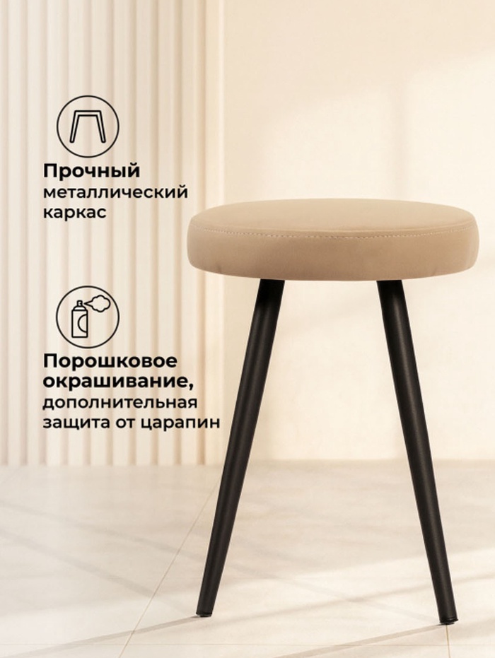 Табурет мягкий «Сино», обивка velutto 05, цвет бежевый/чёрный