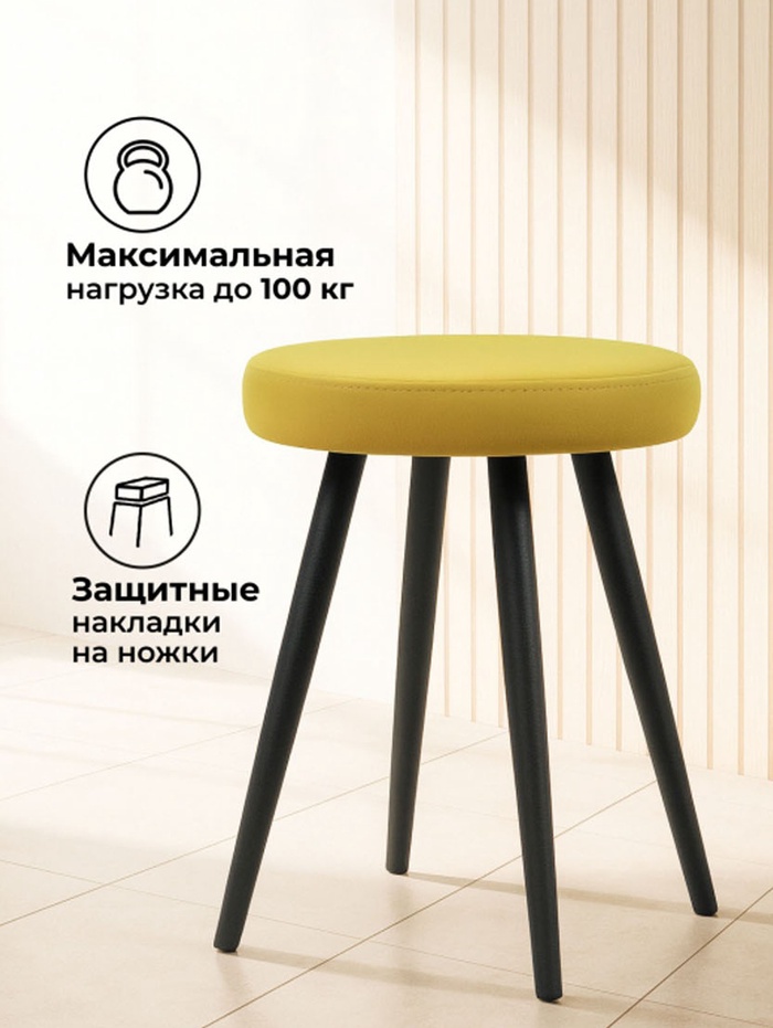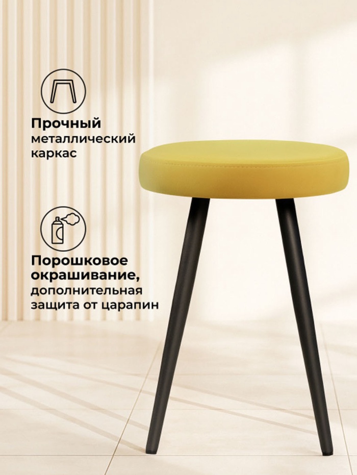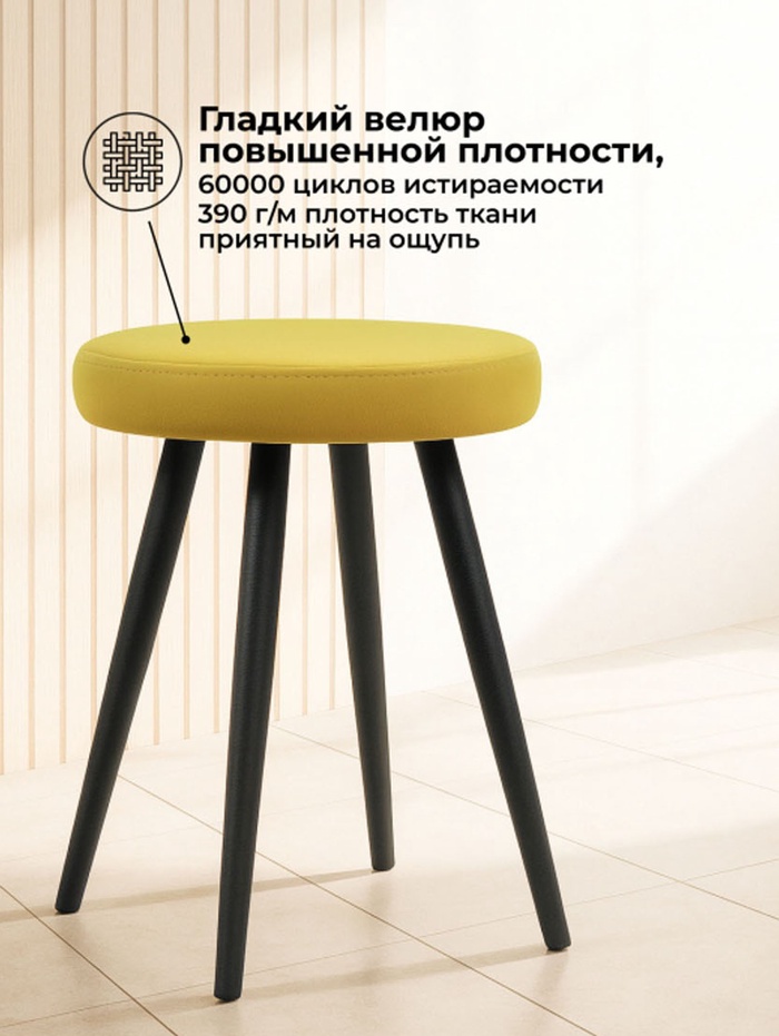 Технические характеристики Табурет мягкий «Сино», обивка velutto 28, цвет жёлтый/чёрный