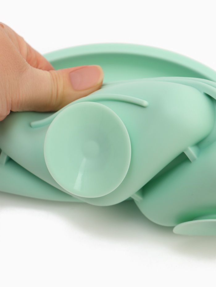 Изделие изготовлено из пищевого силикона — гипоаллергенного, гибкого и прочного материала. Тарелка не содержит бисфенол А (BPA free). Её можно использовать в микроволновой печи и посудомоечной машине. Благодаря износостойкости она устойчива к падениям и деформациям, не впитывает запахи и не окрашивается от пищи. Мягкий материал безопасен для ребёнка, а отсутствие острых краёв исключает риск порезов.