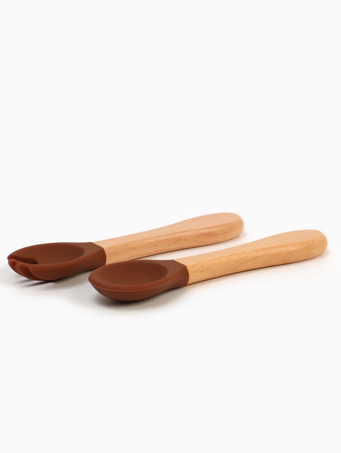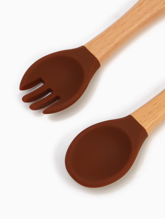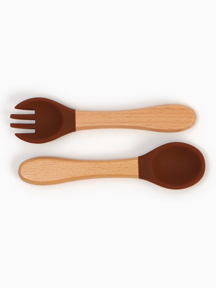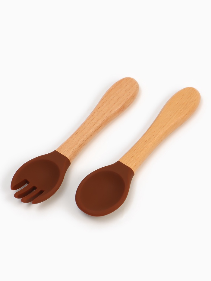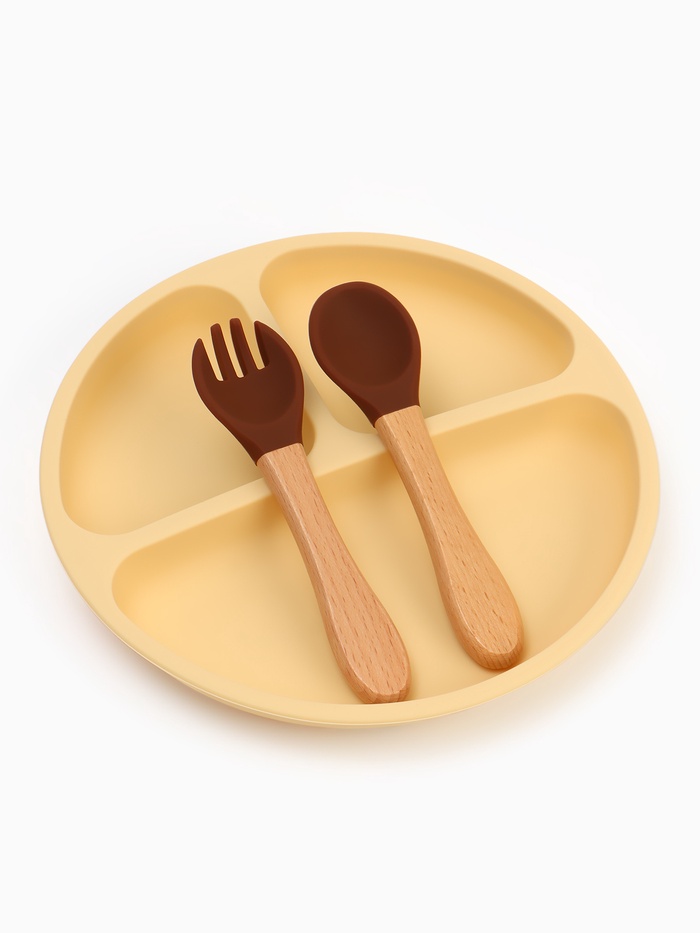 Тарелка детская секционная с ложкой и вилкой, 3 секции, молочный, Mum&Baby